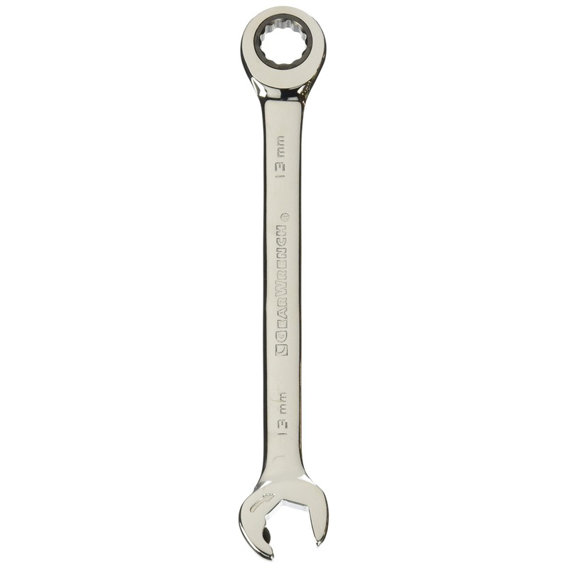 13mm 12 point open end ratcheting combination wrench. Allows ratcheting of nuts and bolts without removing wrench from fastener, making jobs faster and easier.