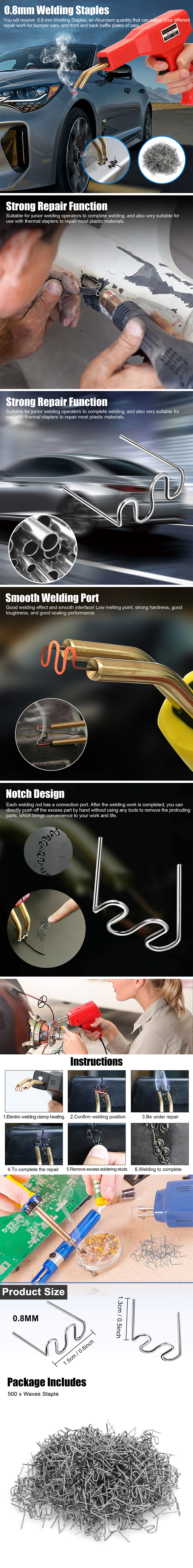 Gearzaar 1000PCS 0.8mm Hot Staples Plastic Welding Wave Stapler for Car Bumper Repair Kit