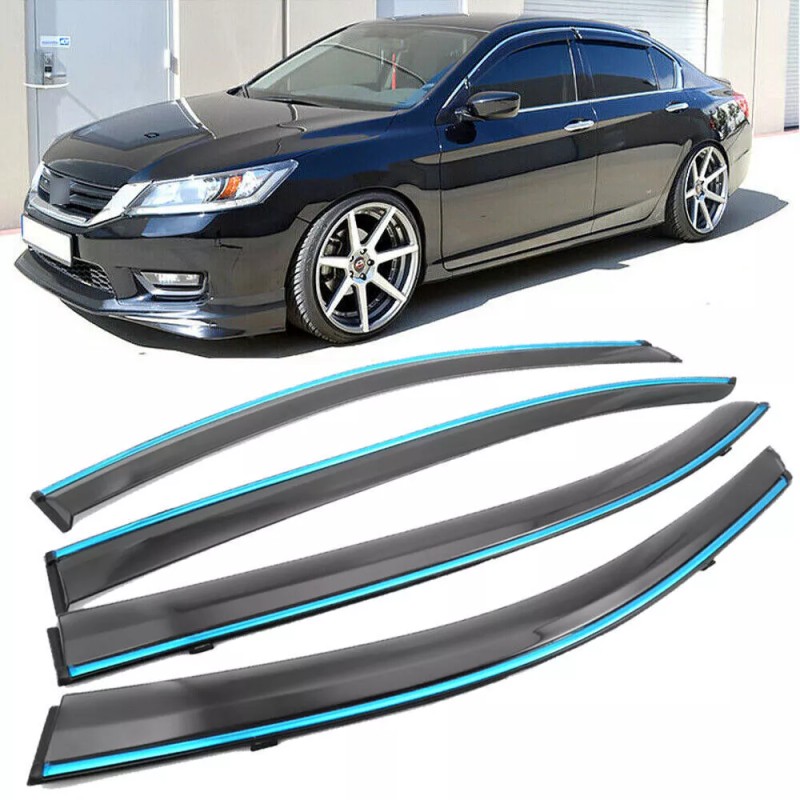 GEARZAAR For 2013-2017 Honda Accord Chrome Trim Window Visors Vent Rain Guards Deflector