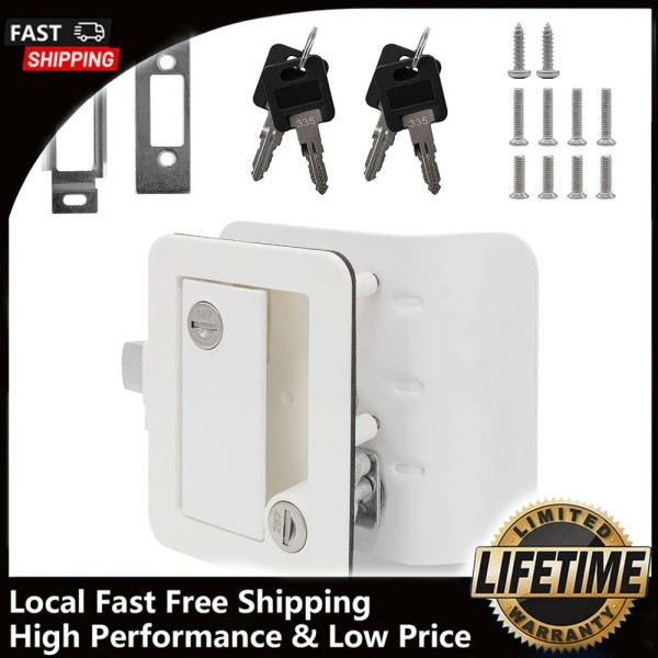 Gearzaar NEW White RV Paddle Entry Door Lock Latch Handle Knob Deadbolt Camper Trailer