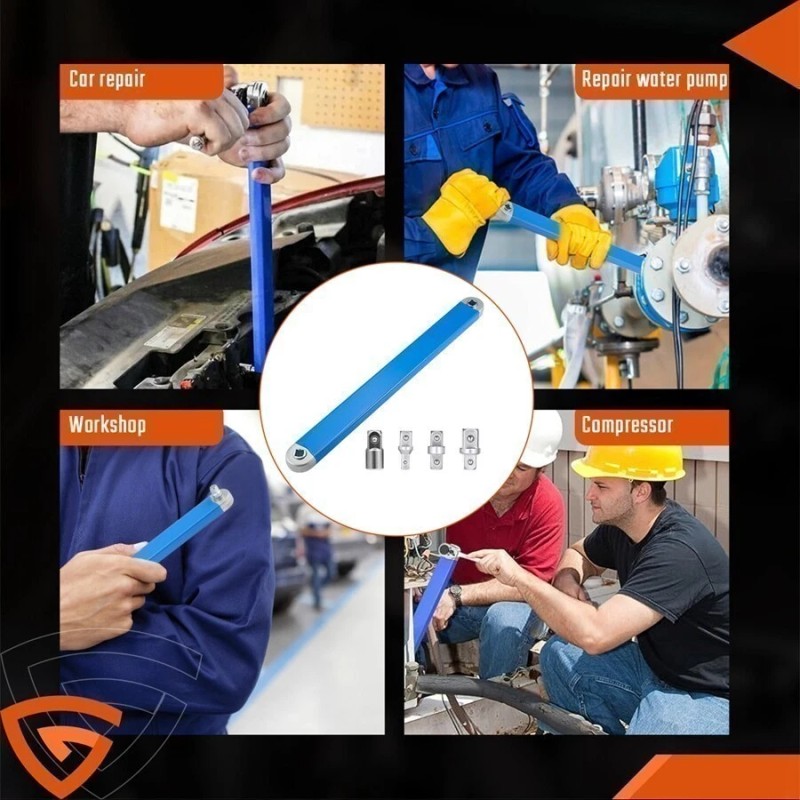 Gearzaar Offset Extension Wrench Set Ratchet Spanner Wrench with 4 Extender Adapter