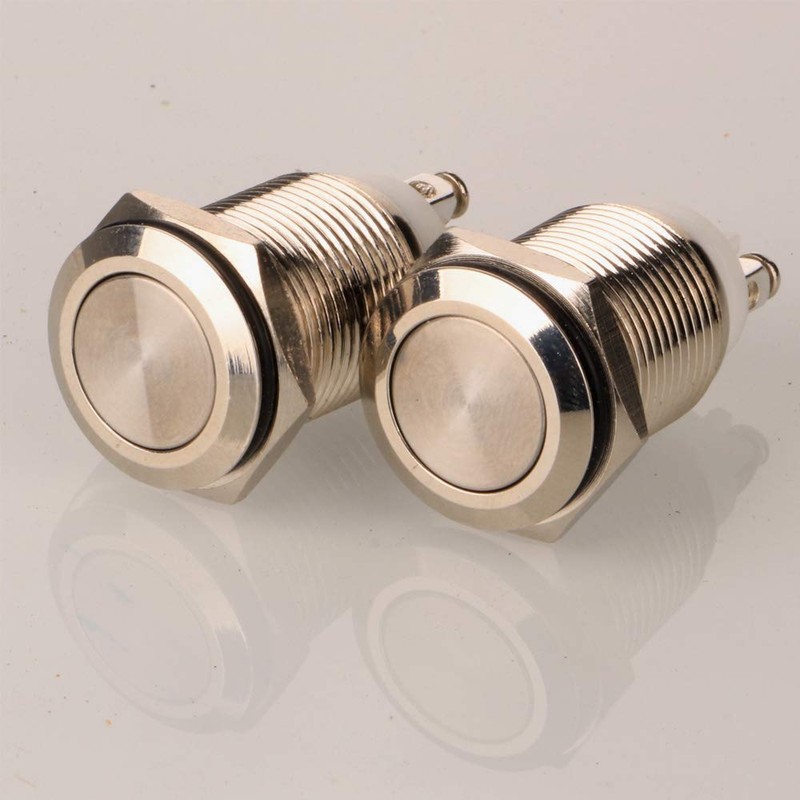 Gebildet 2pcs 16mm Latching Push Button Switch,12V/24V/125V/250V/5A Self-lock Button Switch with 2 Screw Terminals Stainless Steel Metal Waterproof Self-lock Button(Flat Head)