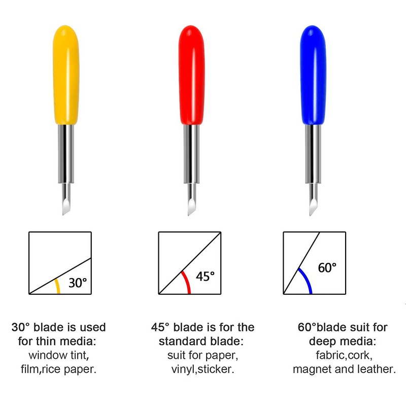 - 3. Applicable material – standard cutting blade, suitable for cutting thin to medium materials. Perfect for paper, card, acetate, fabrics, film, poster board and vinyl, stickers, foam board and so on.