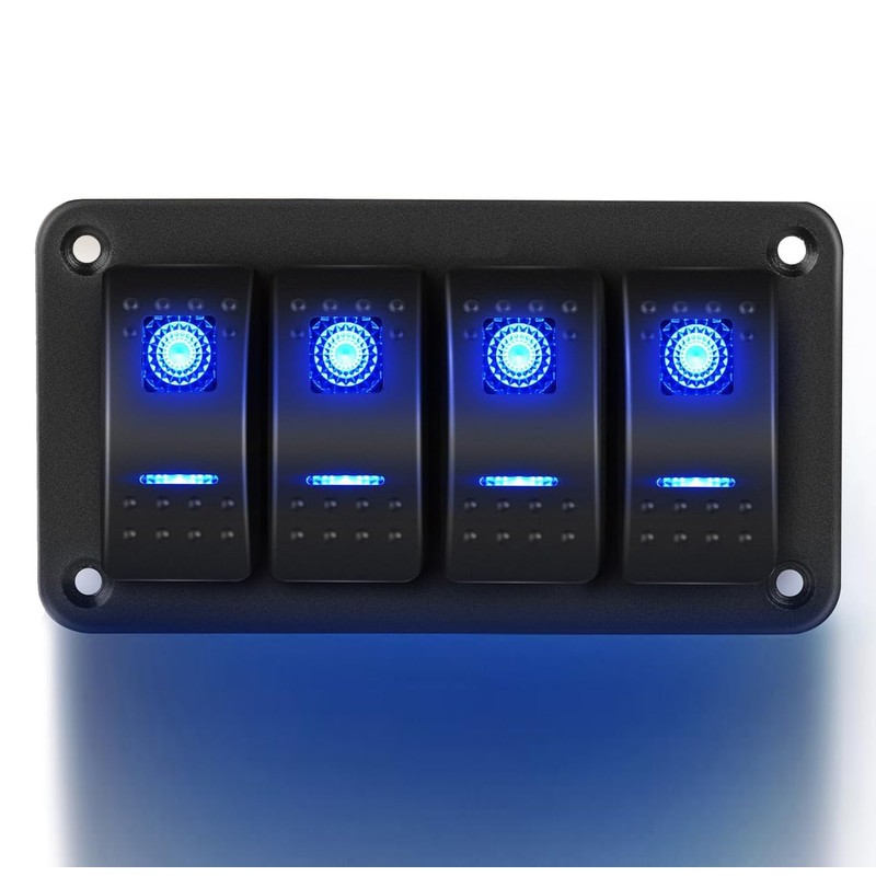 Gebildet 4 Way Rocker Switch Panel, 12V 24VDC, Blue Switches, Aluminium Panel, 5 Pole, ON/Off, Pre-Wired Toggle Switch Panel, Waterproof