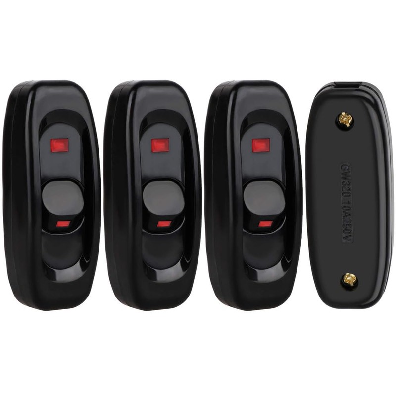 Gebildet 4PCS Inline Cord Switch Appliance Button On/Off 10A 250V Inline Power Switch with LED Light for Table Lamp Desk Light Bed Lamp(Black)