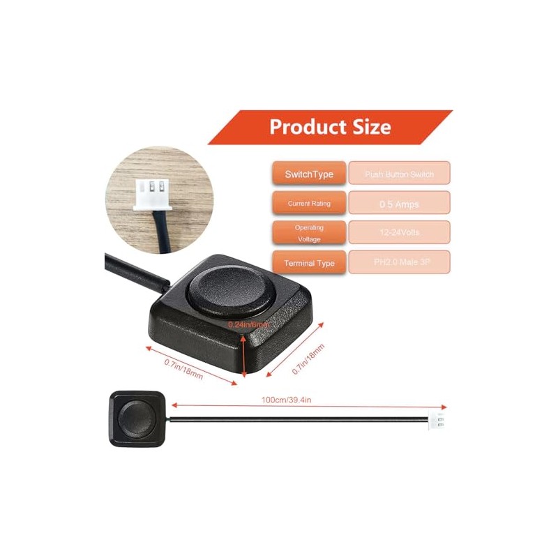 - This 12-24v switch has a compact design, only18*18*8mm, wire length 100cm