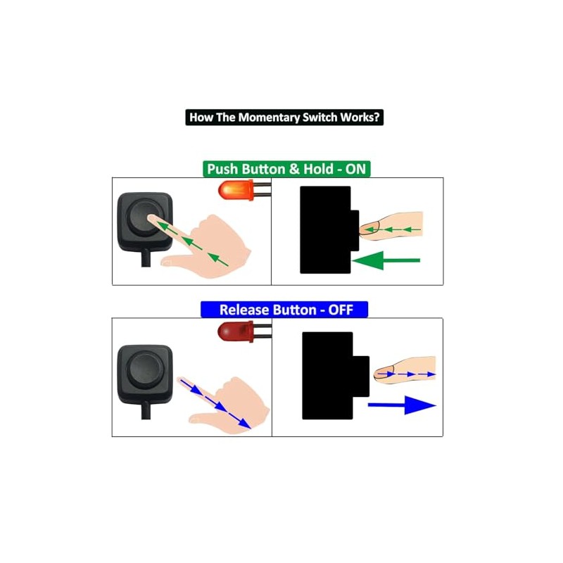 - The operation type of this product is momentary switch, keep holding down the button to turn on the switch, hand off the button to turn off the switch