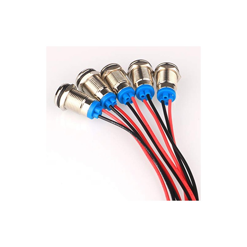 Gebildet Gebildet 5pcs 10mm AC/DC 12-24V LED Metal Indicator Light Waterproof Signal Lamp with Wire