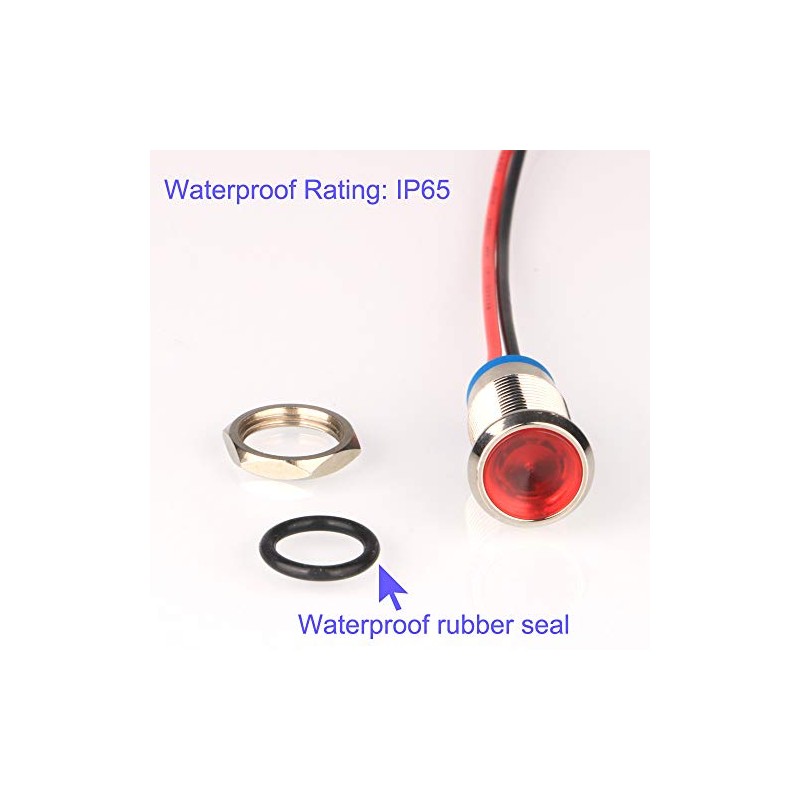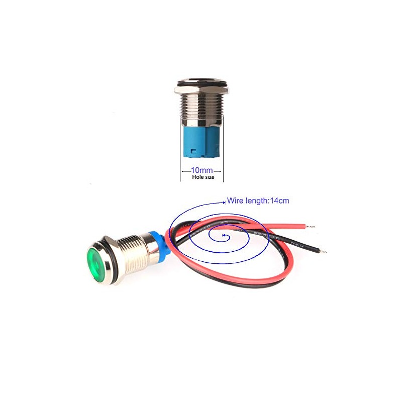 Gebildet Gebildet 5pcs 10mm AC/DC 12-24V LED Metal Indicator Light Waterproof Signal Lamp with Wire