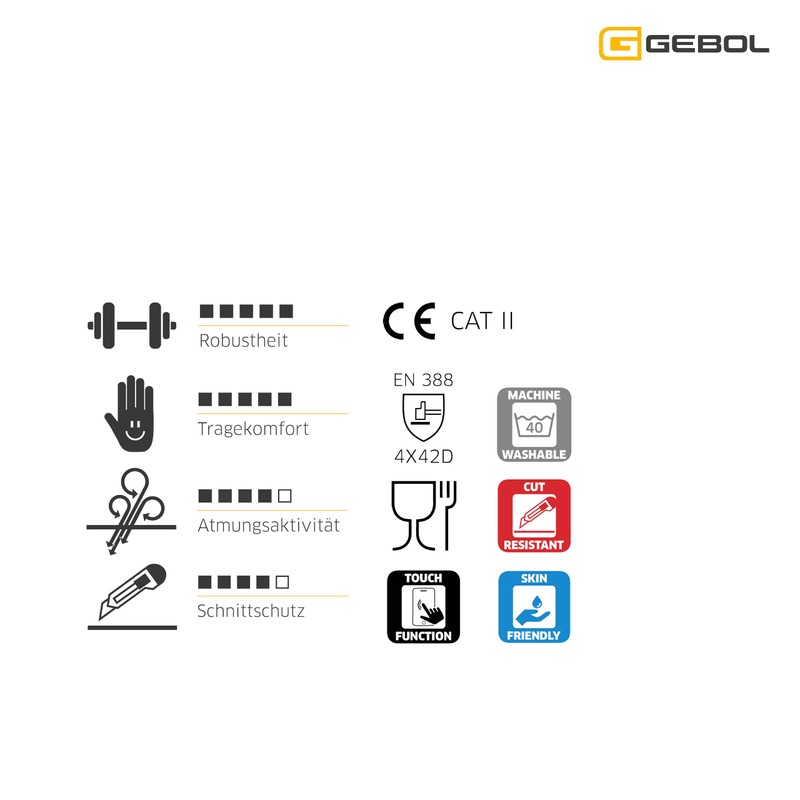 - Quality - This work glove has been developed in Austria as well as designed and tested and certified in Germany. Gebol stands for innovative technology, high quality and a conscious approach to the environment. Trendy colours, combined with perfect cuts and high-quality materials create products that bring pleasure.