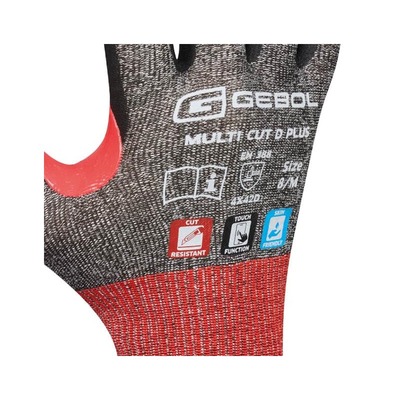 Gebol Multi Cut D Plus Thin Cut Protection Gloves with Soft Nubs Coating, Protective Glove, Work Gloves, Touchable, Washable, Sustainable, Women and Men, Size L, 1 Pair