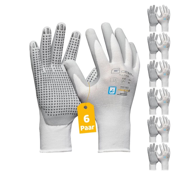 Gebol Multi Flex White, Work Gloves with Nubs, Dermatologically Tested Nitrile Gloves, for Men, Size XL (Size 10), White, 6 Pairs Multipack