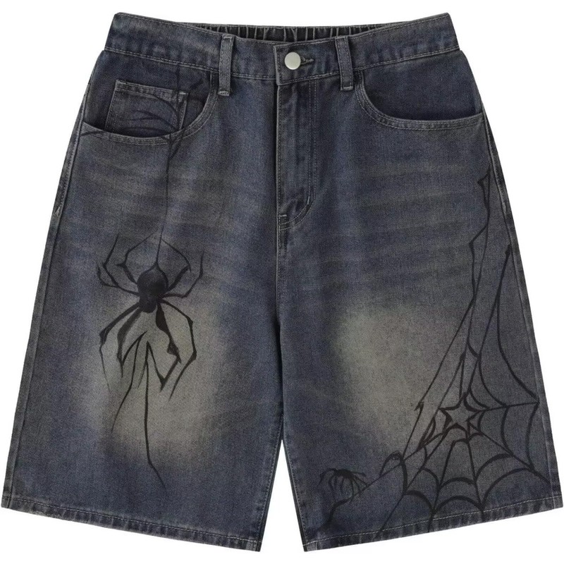 Gecagal Unisex Denim Shorts Spider Baggy Jorts Y2K Streetwear Fashion Jorts Casual Loose Grunge Harajuku Jeans Shorts,L,Spider