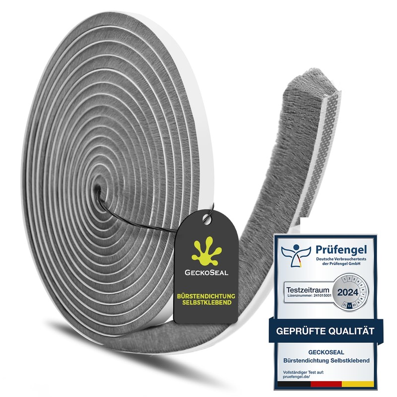 GECKOSEAL GeckoSeal 6m Brstendichtung Selbstklebend, 9mm(B) x 15mm(D), Brstendichtung fr Fenster, Schiebetr, Brstendichtung Rolladen fr Kleiderschr?nk, Trbrstendichtung fr Insektenschutz - Grau