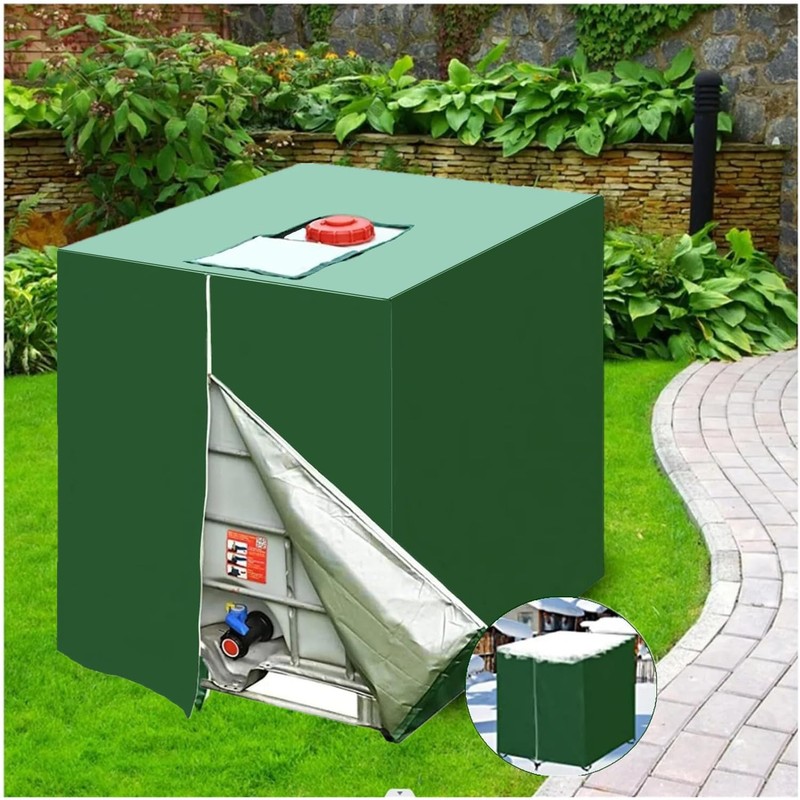 GEDEGOOK IBC Tote Cover, 275 Gallon 1000L Water Tank Cover with Zipper, Waterproof, Anti-Dust, Sun Protective Cover for Water Tank, Water Barrel Cover IBC Rain Bucket Cover 116 x 100 x 120CM, Green