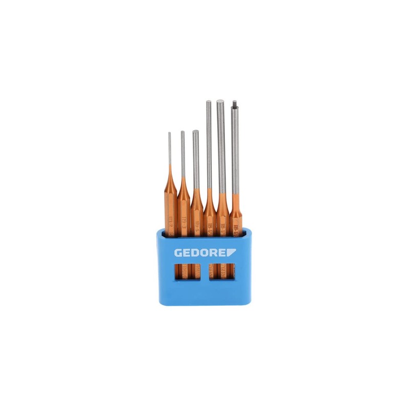 - Box contents: 1 x GEDORE pin punch set including PVC holder, 6 pieces, 2-6 mm, weight: 820 g, 8839990/116 L