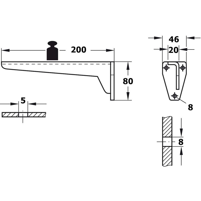 - Design: AxW x C x D x E: 200 x 46 x 80 x 8 x 5 mm – Quantity unit: 1 piece MIRA metal console