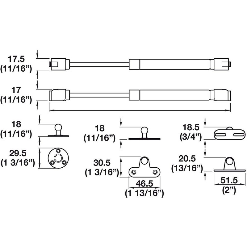 • Specifications: spring lift fitting with length: 268 mm extended / 178 mm retracted - 120 Nm - up to a flap weight of 12 kg - high strength, high hardness and durability - long service life