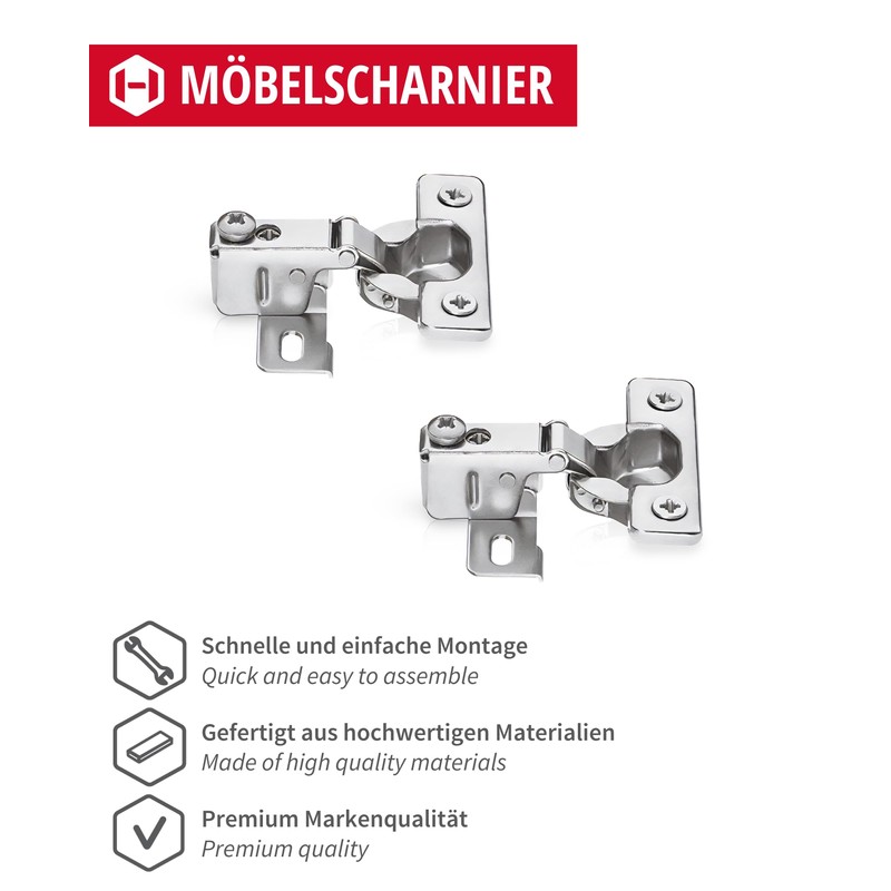 - Short arm hinge for thin hinged doors from 12 mm door thickness - for door height: max. 1800 mm (with 4 hinges)