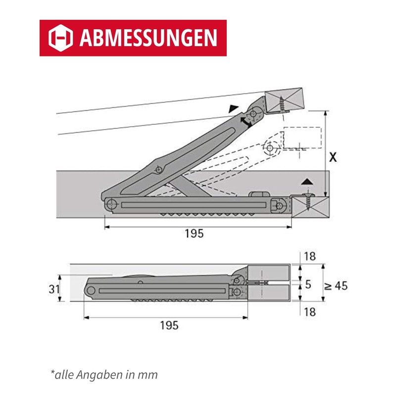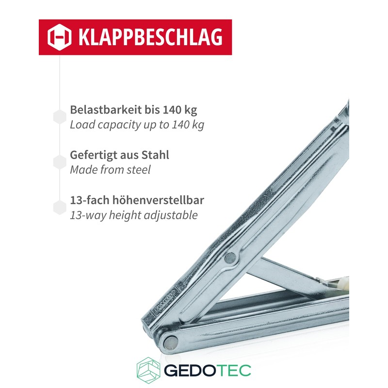 - GedoTec Rastofix professional hinge fitting, adjustable bed fitting, load capacity up to 140 kg.