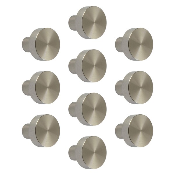 Gedotec Modern Furniture Knob Stainless Steel Door Knob for Drawers - Tellas | Cupboard Knob for Cabinet Doors | Brushed Stainless Steel | Height 20 mm | Knob Diameter 25 mm | Pack of 10 - Design