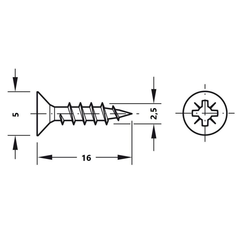 - Specifications: material: stainless steel (quality 1.4567) – surface: matte – full thread screw head cross / countersunk head – screw dimensions: 2.5 mm × 16.0 mm