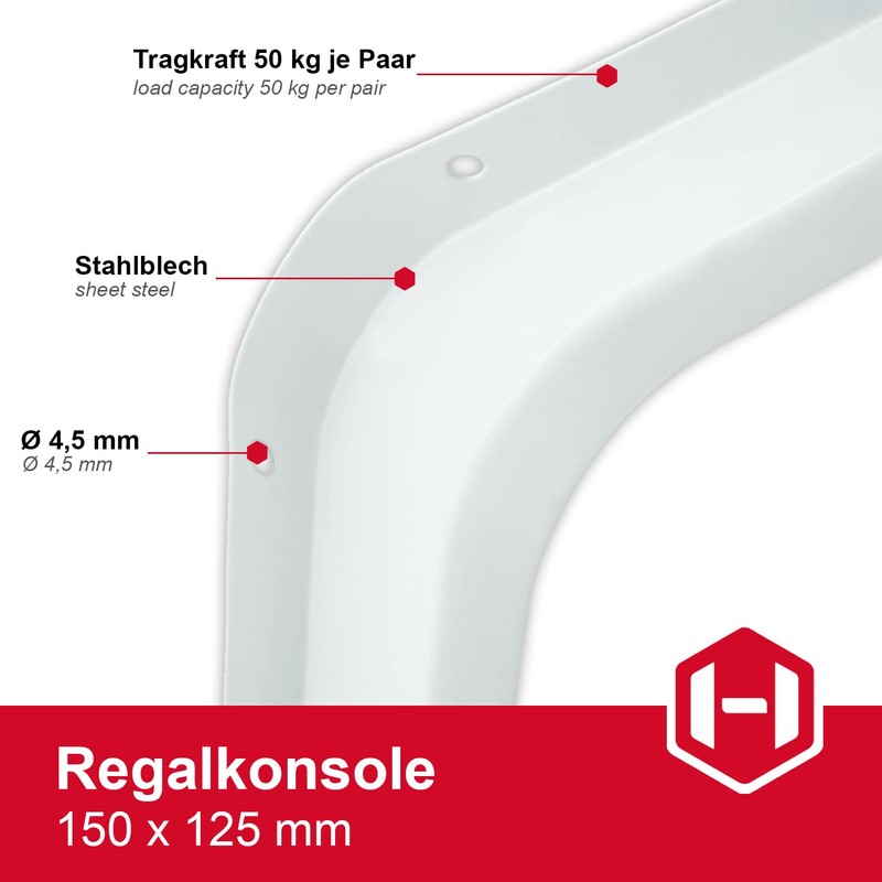 - Practical: practical wall shelf bracket for screwing - dimensions - depth: 150 mm - height: 125 mm - width: 33 mm - material: metal - made of sturdy and robust steel - hole diameter: 4.5 mm