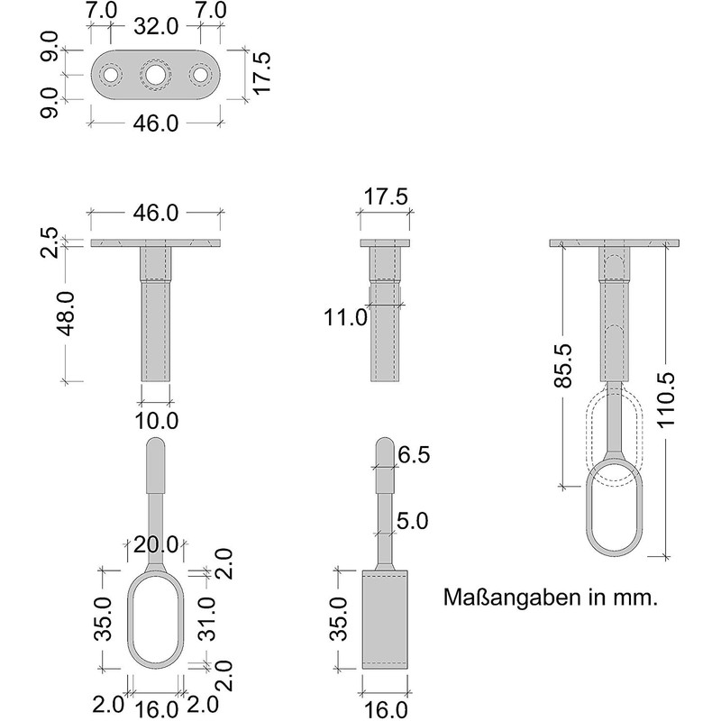 Gedotec Wardrobe Rail Centre Support for Ceiling Mounting Wardrobe Rail Oval Clothes Rail Attachment 30 x 15 mm Steel Black 1 Piece Rail Holder Height Adjustable