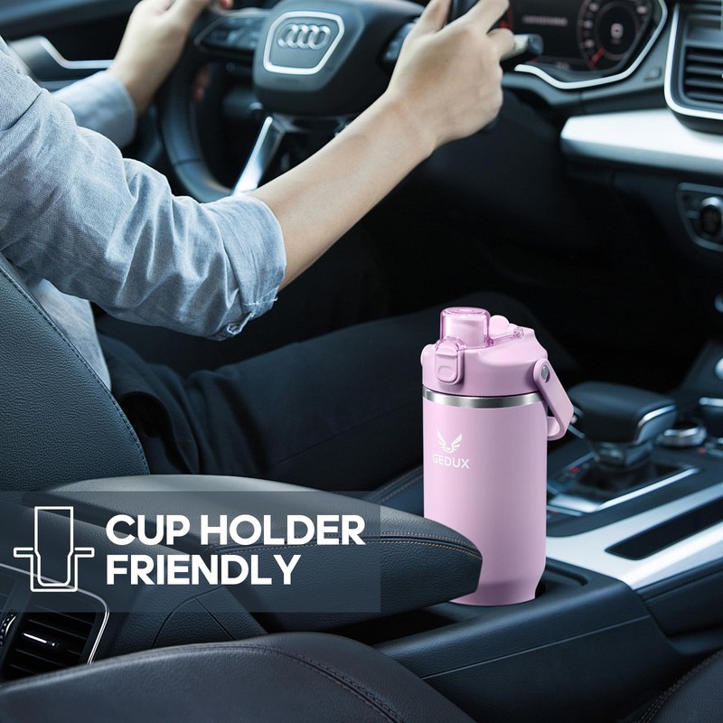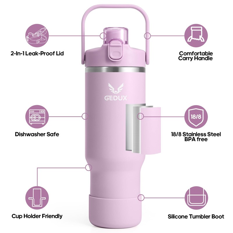 Gedux 32 oz Stainless Steel Tumbler with Handle and Straw, Vacuum Insulated Water Bottle with 2-in-1 Lid (Chug Lid/Straw Lid) and Silicone Boot, Cupholder Friendly Gifts for Women and Men