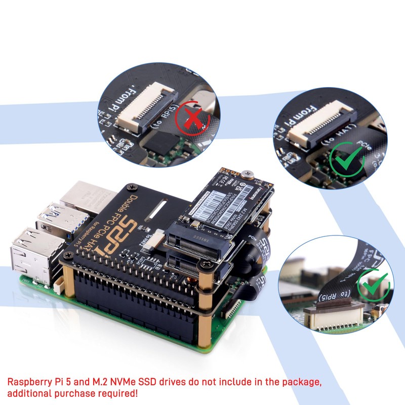 Dual PCIe Expansion: Effortlessly expand your Raspberry Pi 5's FPC PCIe interface into two, providing users with the convenience of connecting multiple PCIe devices simultaneously for increased productivity and versatility.