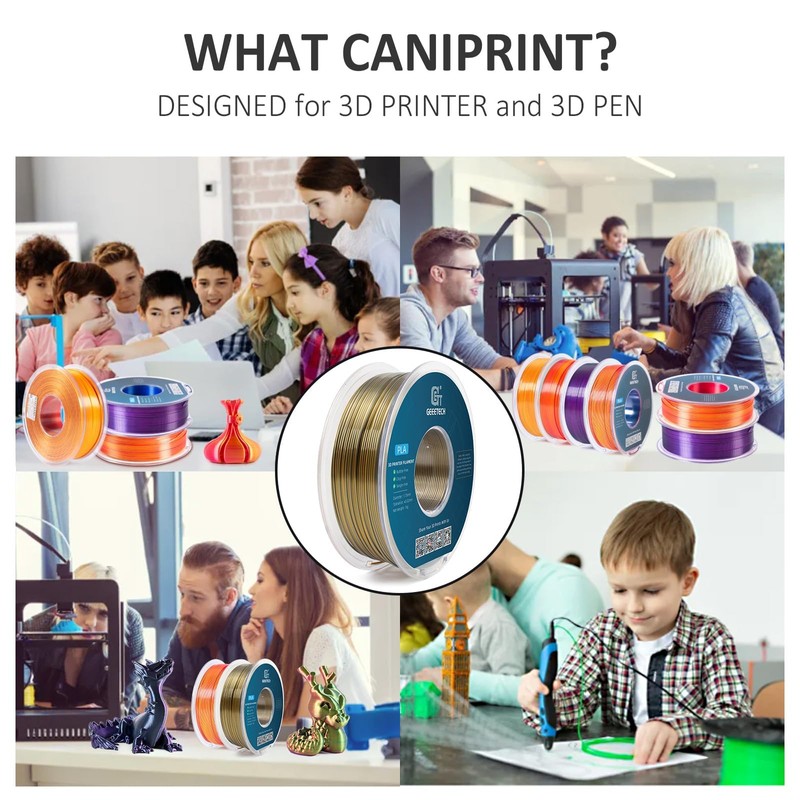 - 【Shiny Dual Color Silk PLA】GEEETECH pla filament is coextruded two colors in one silk PLA base, which prints a smooth appearance with silky shine, shows different colors at different angles. Unique color, very shiny and attractive.