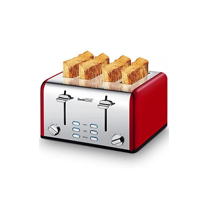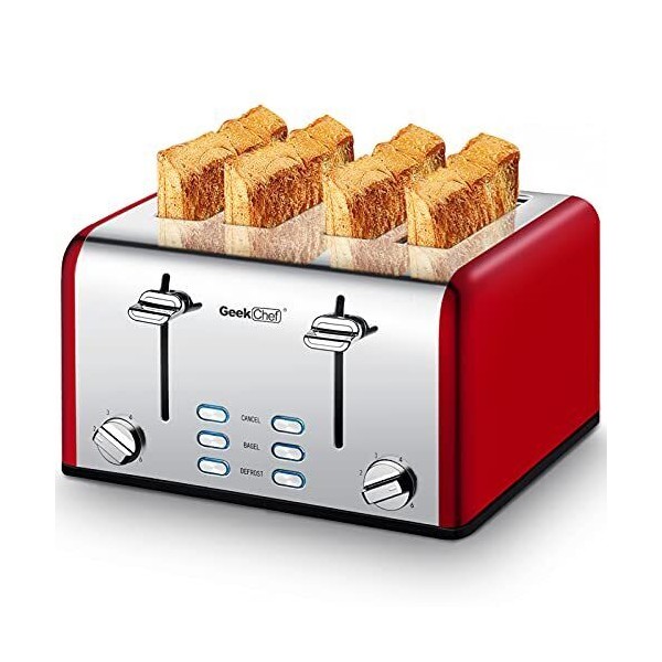 Geek Chef 4 Slice toaster, Best Rated Prime Retro Bagel Toaster with 6 Bread
