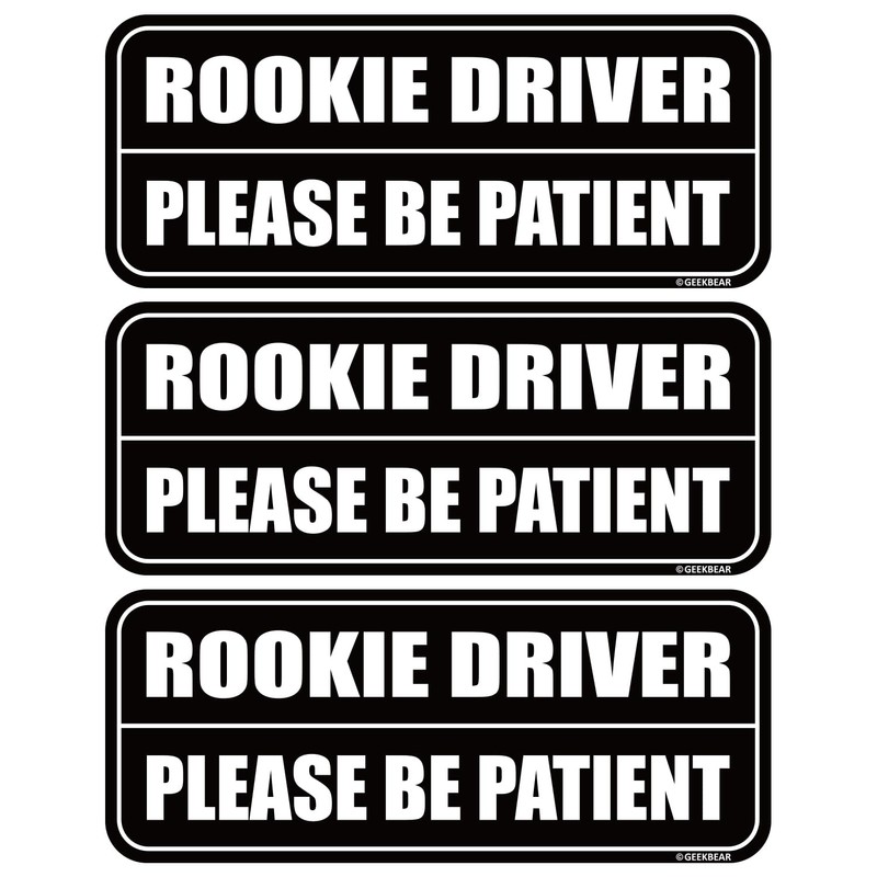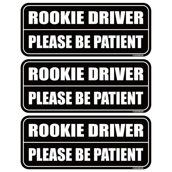 GEEKBEAR Rookie Driver Car Magnet (3 Pack) - Rectangular Shape, 8.7 x 3.6 inch (Black/Black)