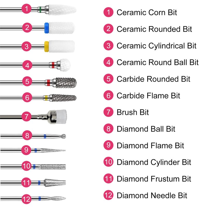 - Complete set: comes with 12 nail drill bits for nails. Provides everything you need to complete an acrylic kit. Ideal for beginners or beginners as well as professionals.