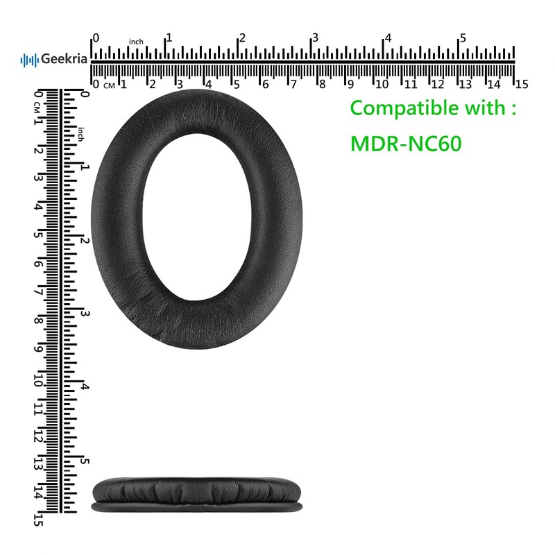 Geekria QuickFit Protein Leather Replacement Ear Pads for SONY MDR-NC60 Headphones Earpads, Headset Ear Cushion Repair Parts (Black)