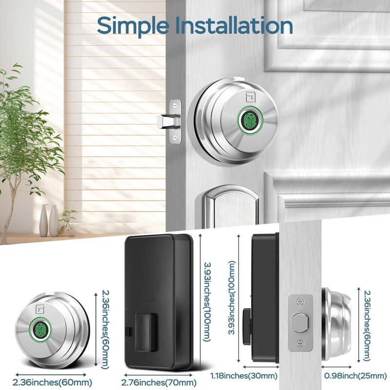 - 3-IN-1 Unlock Ways: Smart deadbolt lock support, fingerprint unlock, App bluethooth unlock(Bluetooth distance within 10m), back-up keys unlock, never worry about forgetting your keys. 360° Fingerprint ID, easy get one touch unlock in 0.3s. Great smart lock for keyless entry door lock for front door