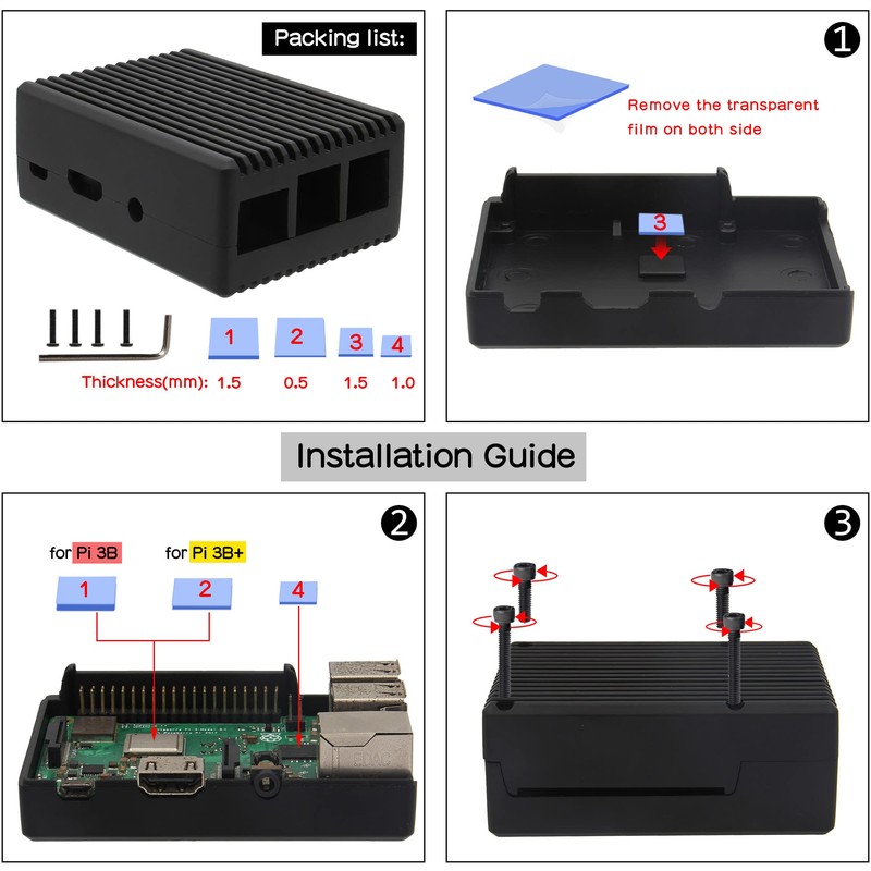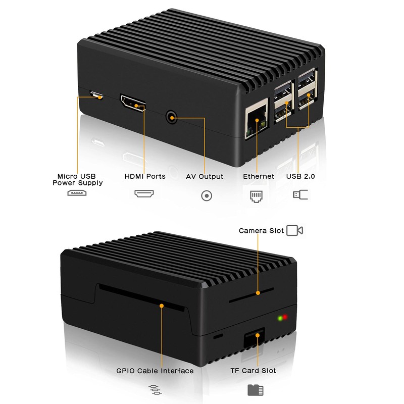 This is a passive aluminum alloy cooling case for Raspberry Pi 3 Model B+ Plus and Raspberry Pi 3 Model B+. This aluminum housing has excellent heat dissipation.
