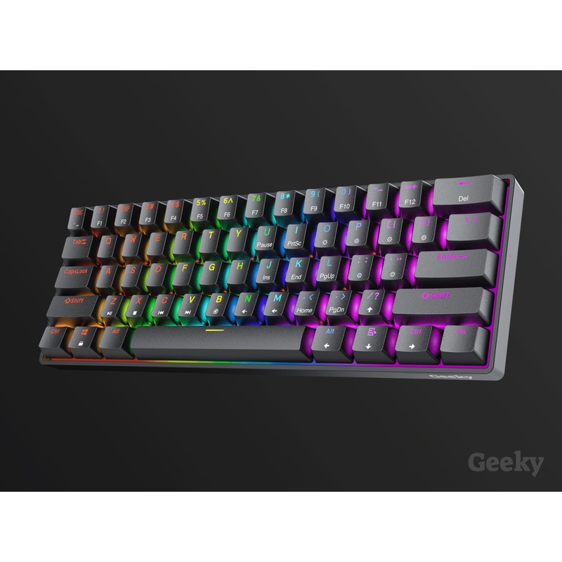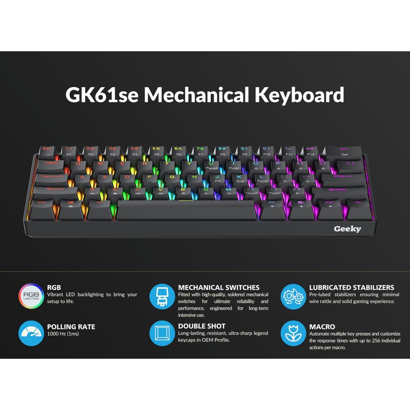 Geeky GK61 SE 60% | Mechanical Gaming Keyboard | 61 Keys Multi Color RGB LED Backlit for PC/Mac Gamer | ANSI US American Layout (Black, Mechanical Black)