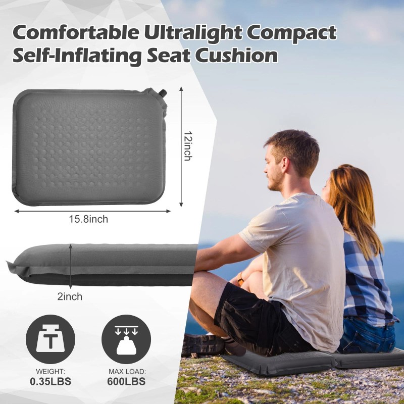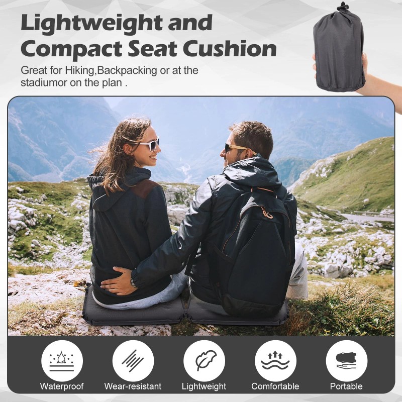 Lightweight Compact: the portable seat cushion is lightweight, weighing only 0.5 lbs, and measures 15.8x12x2 inches when inflated and 7x3.9 inches when folded, making it easy to store in a backpack or pocket and carry with you for a variety of outdoor activities