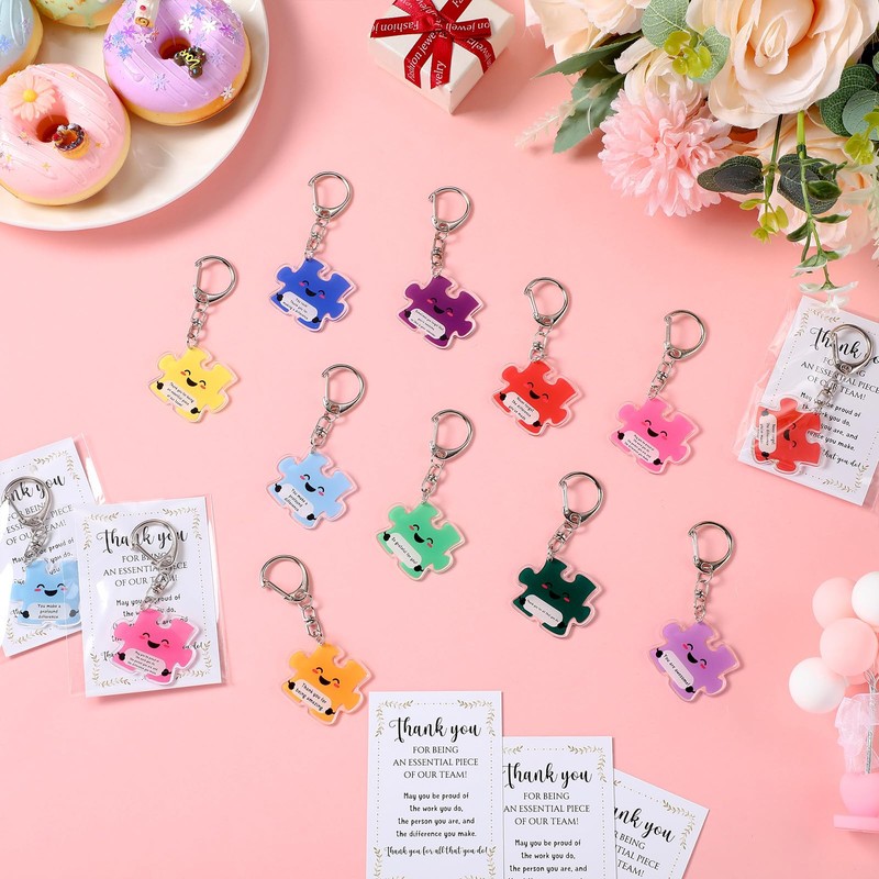- Meaningful Design: these motivational keychains bulk are available in 10 colors and designed in a puzzle piece shape with a thank you message printed on the surface, symbolizing teamwork and connection, each inspirational keychain comes with an inspirational card and a OPP bag, making them perfect appreciation gifts for employees, coworkers, office staff, volunteers, and teachers, and so on