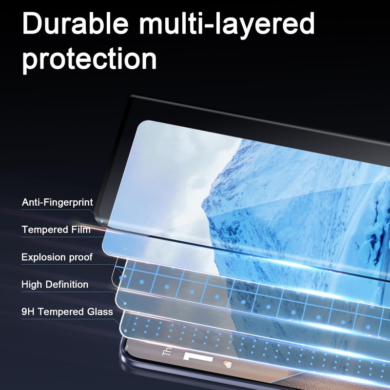 - Hardness 9H: Adopted reinforced glass, boasts about twice the durability compared to standard glass protection film. Even with cracks, scattering is prevented from processing that has no fragments.