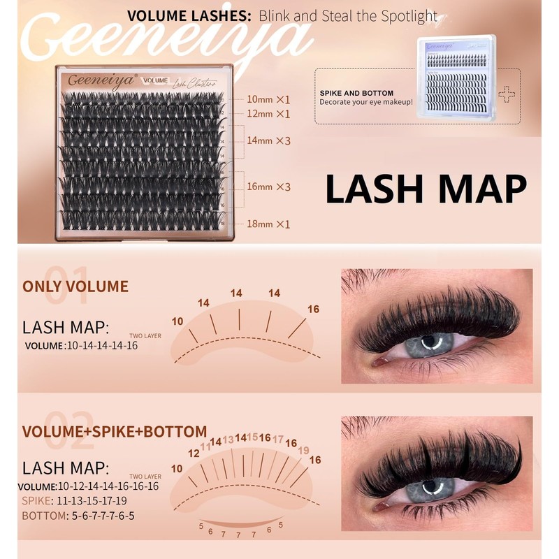 - How to Style Spike & Bottom Lashes for Any Look? Here are Geeneiya TikTok’s 6 hottest lash maps! Mix spikes and volume or fluffy lash clusters for daring, head-turning styles. Super beginner-friendly—get pro-level results in no time