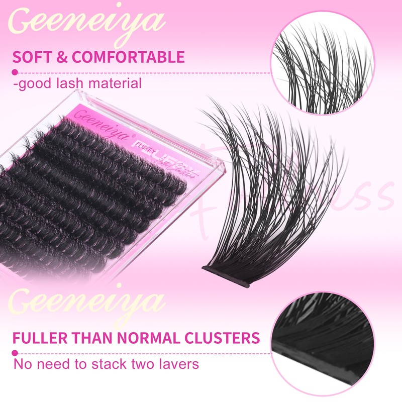 Geeneiya Full Lash Clusters D Curvature Eyelash Clusters Thick Cluster Eyelash Extensions Wispy Individual Lashes Extensions Waterproof Lashes DIY at Home for Beginners with Lash Map