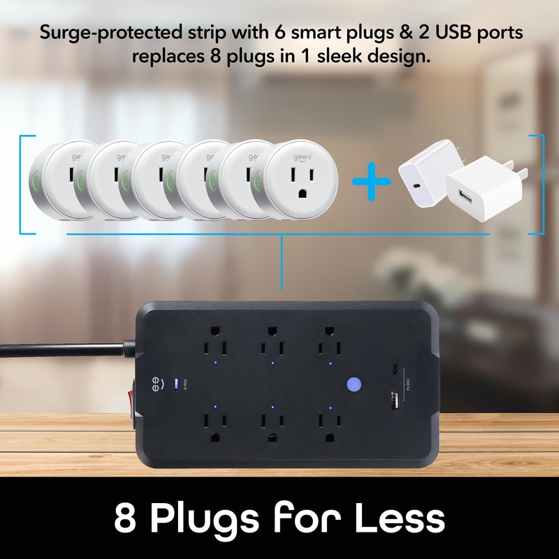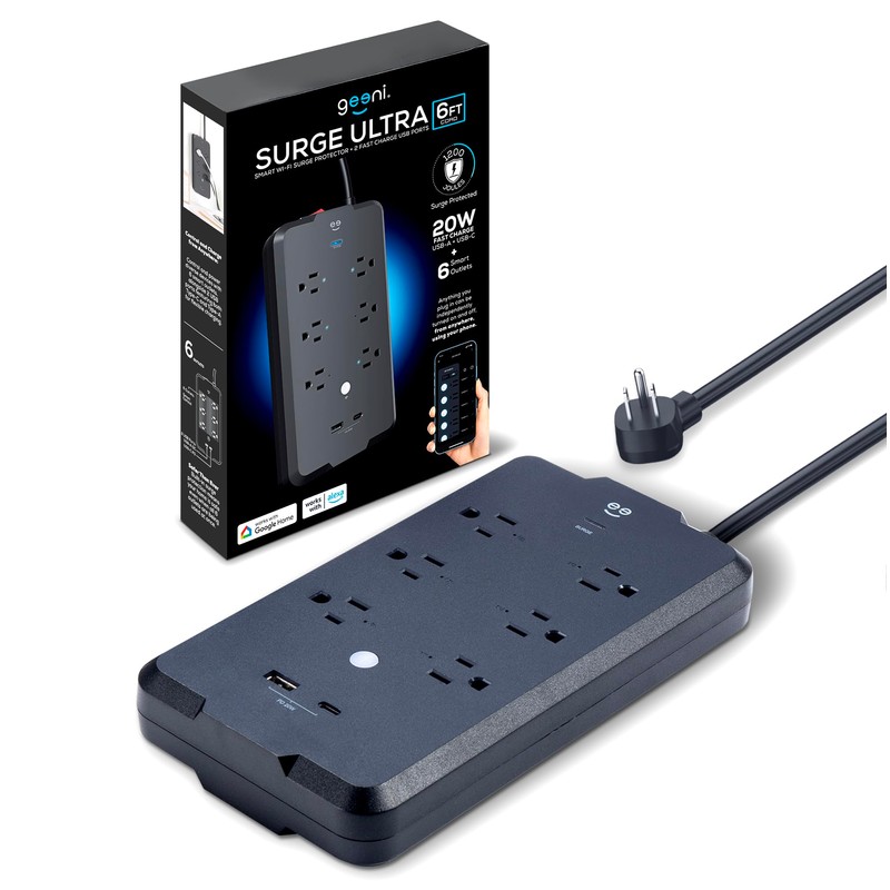 - SURGE PROTECTION: Ensure your electronics are safe with robust surge protection up to 1200 joules. The Geeni Smart Plug Power Strip guards against sudden power surges that can cause irreparable damage.