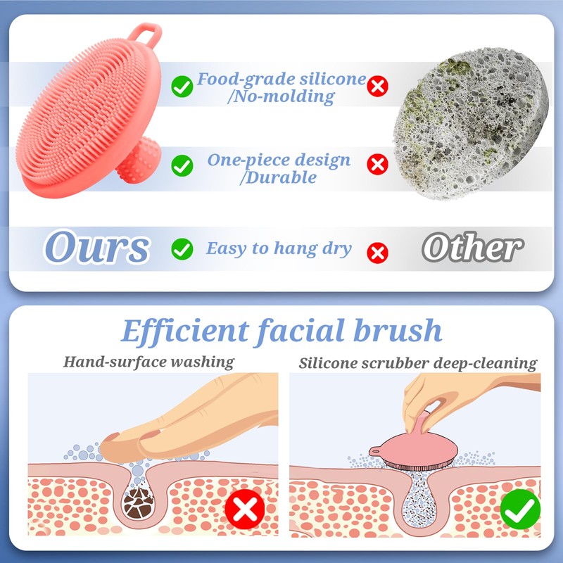 - 【Gentle Exfoliating and Deep Cleaning Face Scrubber】Soft & Thin Bristles, Thickened Base & Anti-slip Handle are combined to make this face brush an unparalleled face cleaning tool. Soft and thin bristles brings gentle exfoliating and deep cleaning into each pore; Thickened Base & Handle provides strong scrubbing, easy lathering, Strength-saving and easy-to-grip Handling.