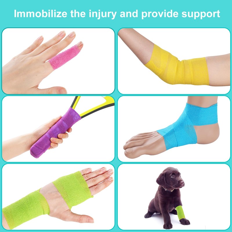 - 【Variedad de 7 paquetes】: incluye 7 rollos (tamaño: 5 cm x 4,5 m) de vendajes en varios colores vibrantes para combinar con la personalidad de tu mascota o para identificar fácilmente diferentes vendajes para diferentes heridas o tratamientos. Y siete patrones y colores: pequeña cara sonriente sobre fondo blanco, pequeñas patas azules sobre fondo blanco, perro verde hierba, naranja, azul claro, fondo amarillo, patas negras rosadas.