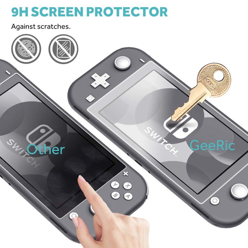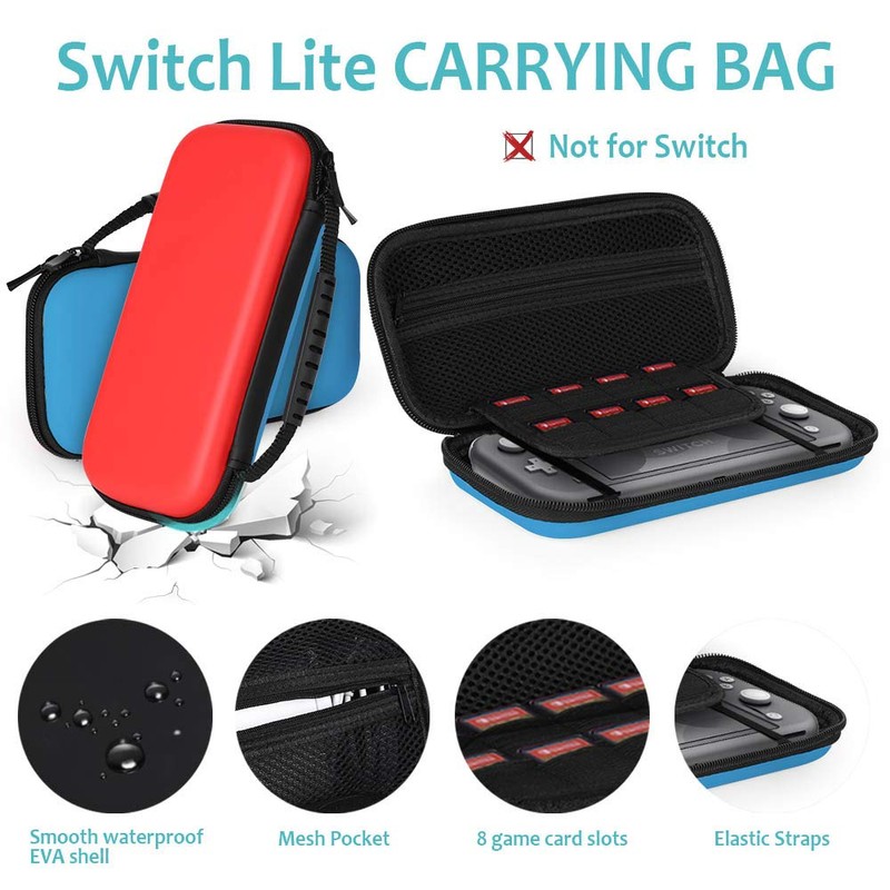 **Why choose GeeRic Kit accessories?** **1\. Ample storage space.** \--- Portable bag can keep your device, headphones, or small accessory items. Also with 8 special slots to place video game.【NOTE!】:The inside pocket of the bag cannot contain the power supply and power bank. **2\. Portability** \--- This carrying case with a comfortable handle allows you to carry the game console and other essential accessories. **3\. Perfect Protection** \--- The EVA hard case for your device protects against scratches, dust and shocks. The soft inner material keeps your device safe from scratches. **4\. Classic Color** It doesn't matter if you buy for yourself or as a gift for your friends, it's the best choice. Don't hesitate, buy it! **Package Included:** 1 * Bag Replacement for Switch Lite 1 * Silicone Cover Replacement for Switch Lite 2 * Tempered Glass Replacement for Switch Lite 4 * Thumb Grips Replacement forr Switch Lite (white * 2 + transparent * 2)