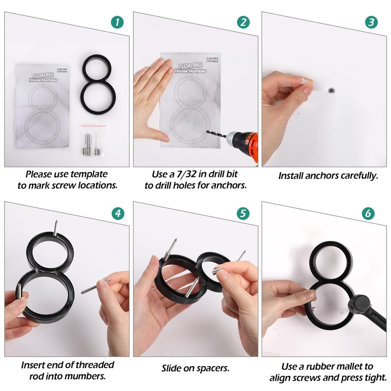 - 🏡【Instalación simple】:El paquete incluye todo el hardware de montaje e instrucciones necesarios para una instalación rápida y sin complicaciones. Se incluyen tornillos y soportes flotantes para su fácil instalación, solo se necesita perforar en la superficie donde se colocará el número y luego atornillar, no requiere pasos complejos, se ahorra tiempo y esfuerzo.
