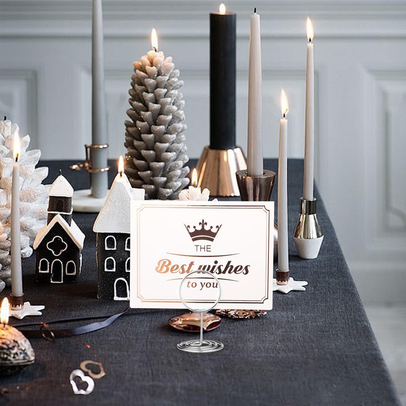 - 5. Multiple Application: the name card holder can be widely used as memo, notes, photo clips, wedding name card stands, banquet table number holders. It can perfect fit into a wedding, or decorate your home, and even stand in your office.