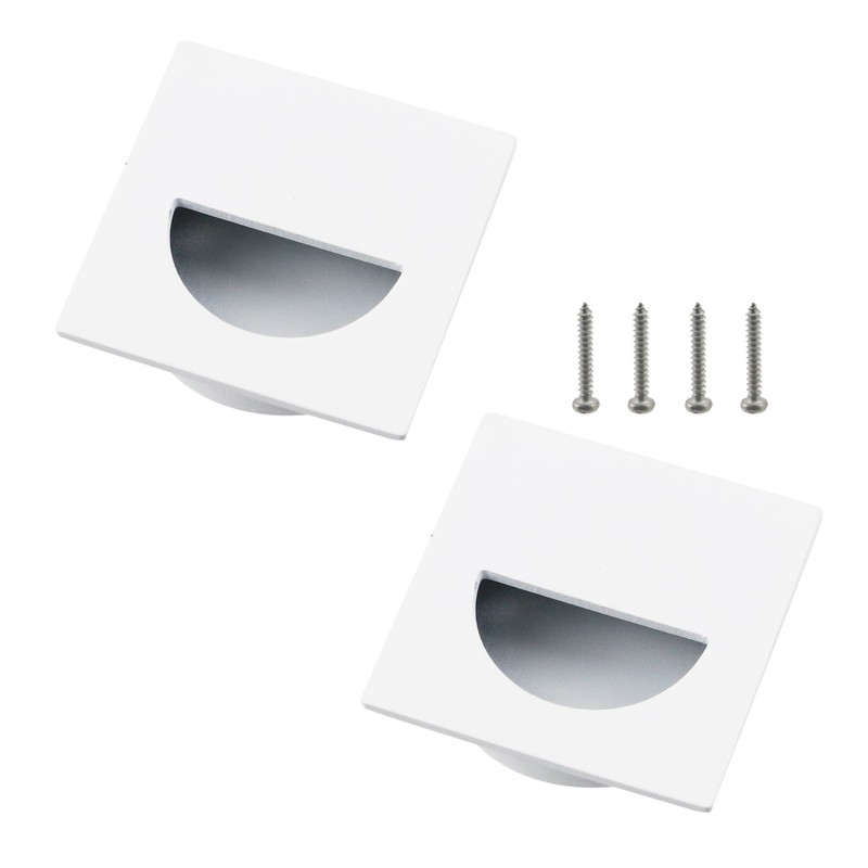 Geesatis Square Recessed Sliding Closet Door Finger Flush Pulls,Pocket Door Handles,Outter Diameter 1.6X1.6inch,Barn Door Handles,Drawer Pulls(White,2 Pack)